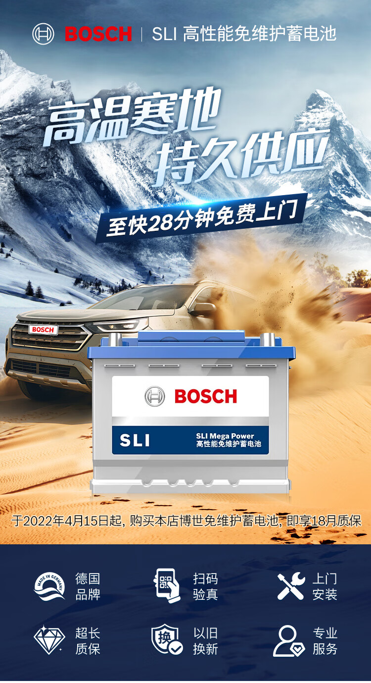 博世(BOSCH)汽车电瓶蓄电池动力神免维护L2-400 12V上门安装 以旧换新