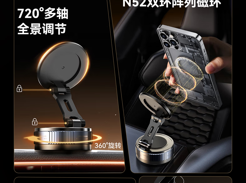 智国者手机支架车载磁吸真空吸附盘式2025新款汽车导航仪表台通用特斯拉