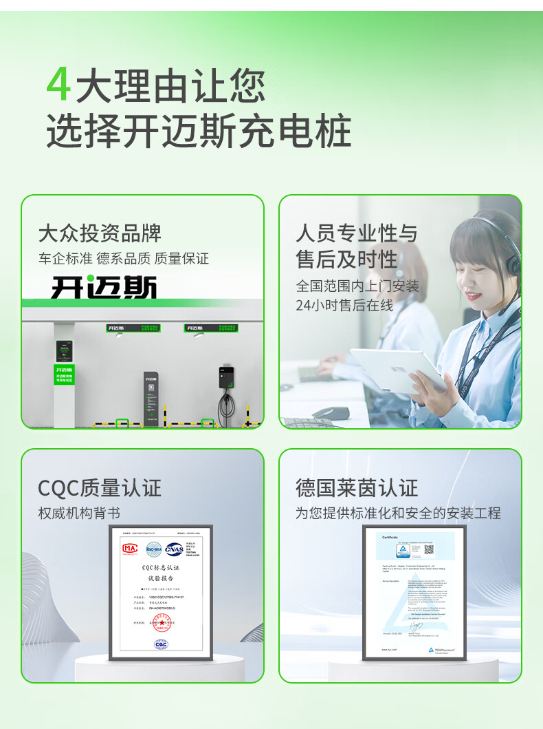 开迈斯7kw充电桩枪家用新能源电动汽车适用于特斯拉比亚迪大众原厂id3/4/6 0米安装