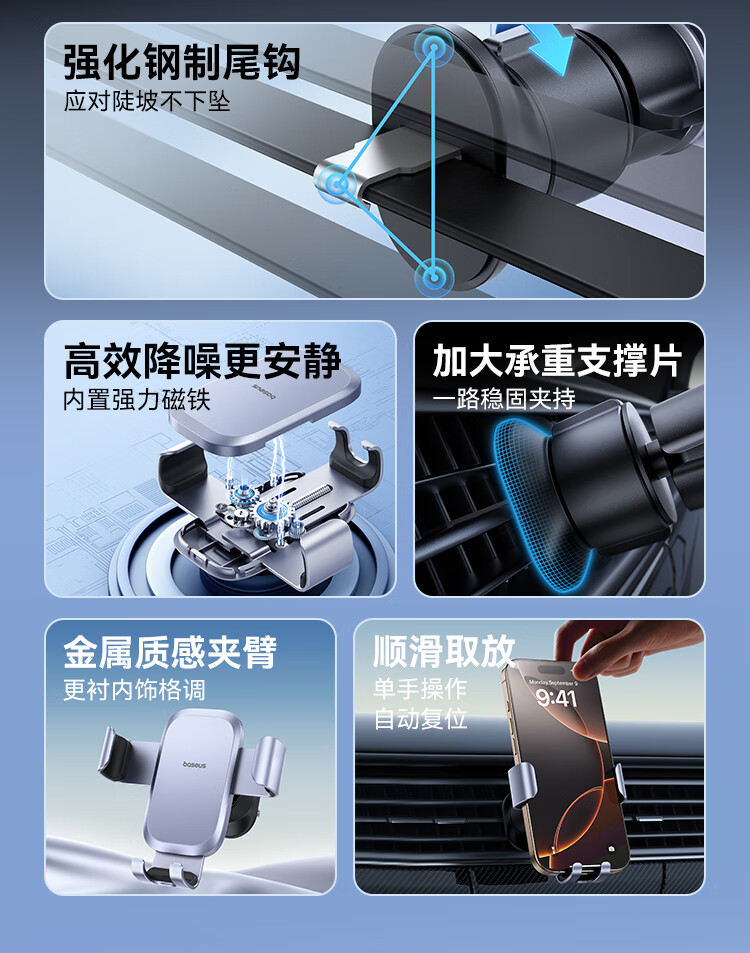 商品名称:倍思 车载手机支架 汽车导航支架出风口固定器 汽车用品车内饰品小件