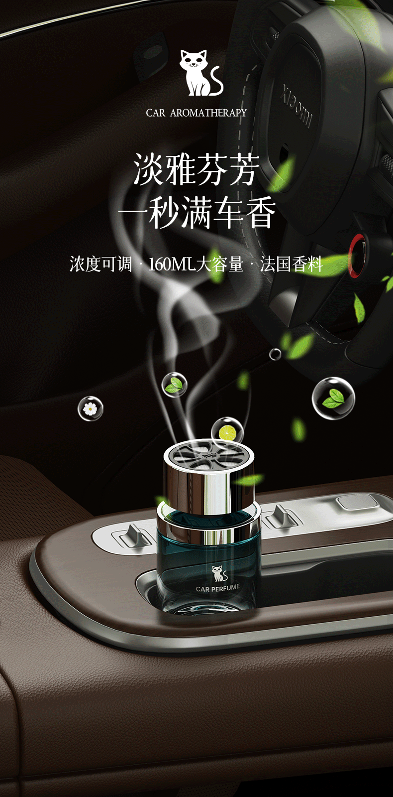 惠车猫车载香薰汽车香水栀子花车用高级正品香氛持久留香车内除异味杯架